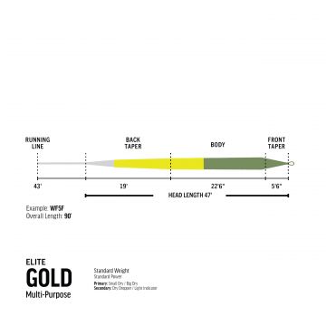 The Elite RIO Gold has a taper design that gives incredible loop stability at distance and a front taper that delivers perfect presentation of flies between sizes #2 and #22. With a long head and back taper this line is an excellent all around fly line on rivers and lakes when long casts and complete line control are required.